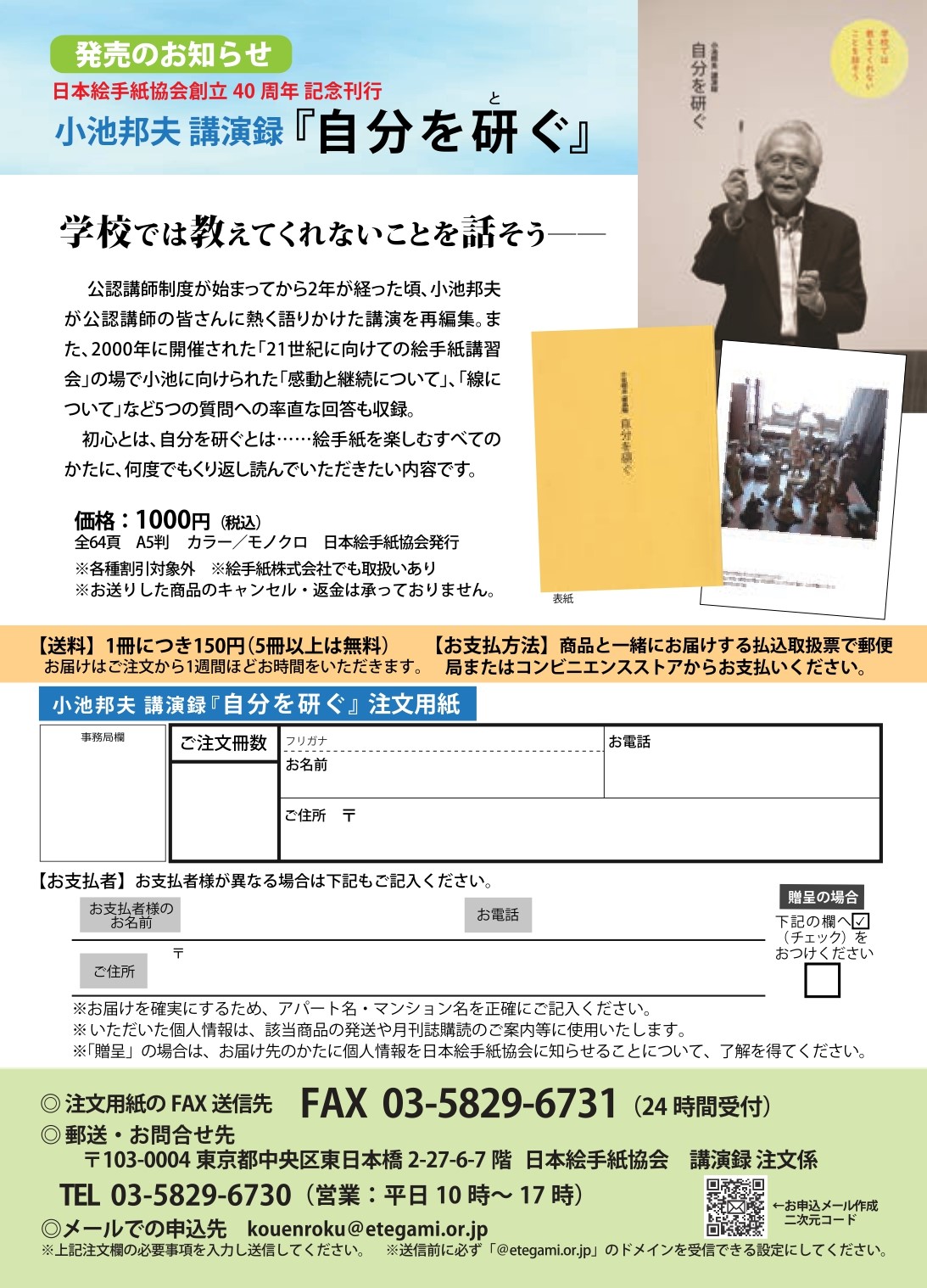 日本絵手紙協会創立40周年を記念し小池邦夫講演録『自分を研ぐ』が発売されました。