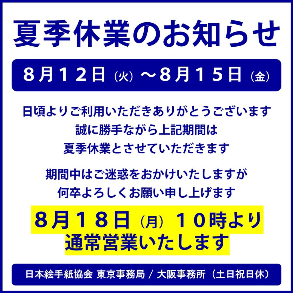 【夏季休業のお知らせ】 2025年08月01日 お知らせ 誠に勝手ながら8月12日(火)~8月15日(金)※土日祝日休の期間、夏季休業とさせていただきます。期間中はご不便をおかけしますが、何卒ご了承くださいますようお願い申し上げます。18日(月)10:00より通常営業いたします。 戻る